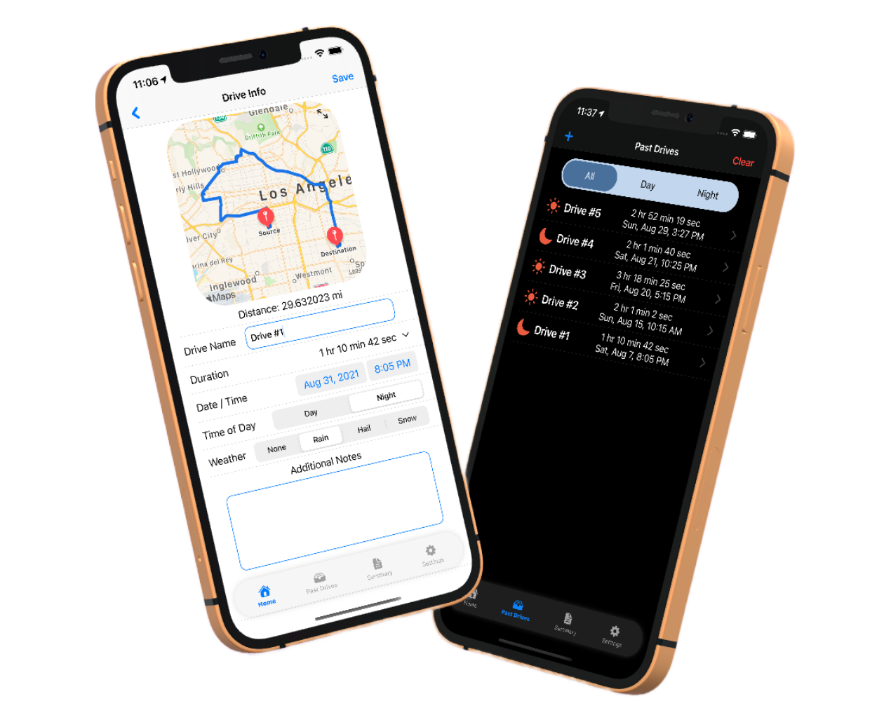 Export all your drive data to PDF and print them out to show at the DMV when taking your driving test.
